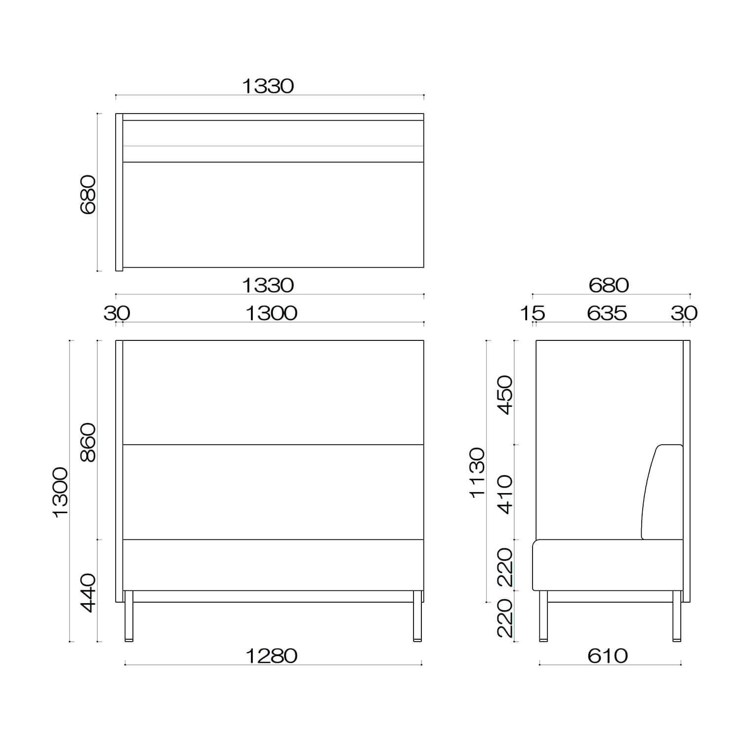 無駄のない直線的なフォルムが、オフィス空間に端正な印象を与えます。サイドパネルの立ち上がりがほどよい囲まれ感を生み出し、オープンスペースの中に落ち着いた居場所をつくります。