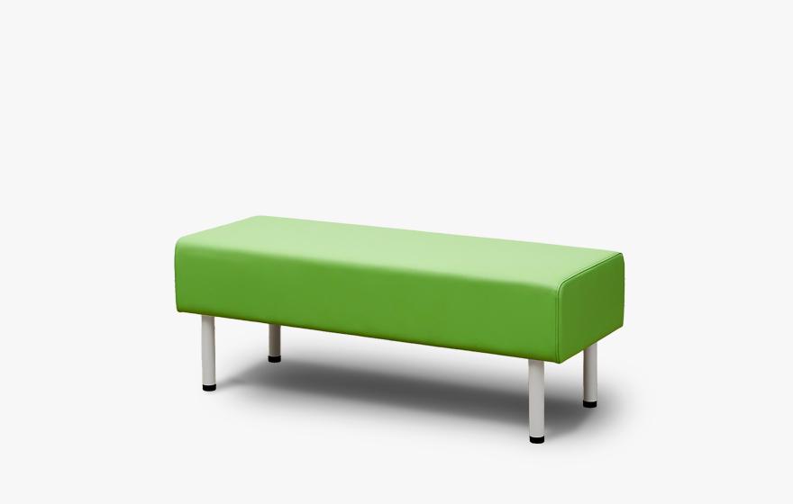 無駄をそぎ落としたフラットなフォルムは、エントランスや待合スペースなど幅広いシーンで活躍。背もたれのないデザインにより、空間を圧迫せず、レイアウトの自由度を高めます。